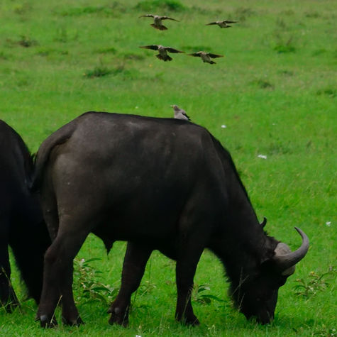 Lions (lots), zebras (lots), black rhinos (few), giraffes (lots), buffaloes (lots), hippos (lots), hyenas (lots), wild-beast (lots), gazelle (lots), elephants (lots), baboons (lots), dik- dik, warthogs (lots), waterbucks (lots), leopard (one), cheetah (few), jackals (few), crocodile (few), mongoose (few) and a variety of water fowls like pelican, Egyptian goose, Secretary bird, Jackson's Francolin, goshawks, sunbirds, plovers, Sparrow hawks or eagles.