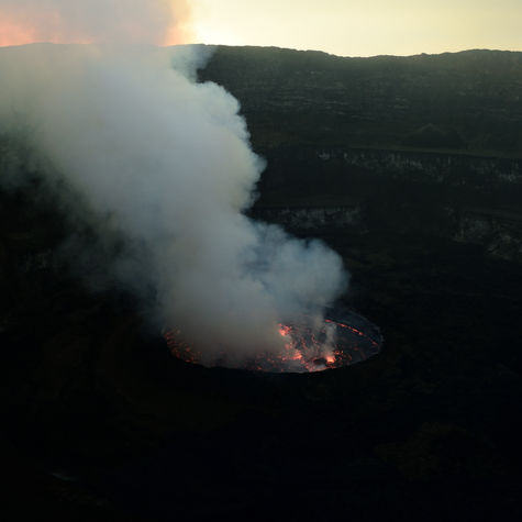 Located inside Virunga National Park about 20 km. North of Goma, Mount Nyiragongo is currently still active, erupting at least 34 times since 1882 (last deadly taking 147 lives in 2002). Its activity is, for now, being confined to the crater, where the lake of lava is slowly rising once more. Much of Goma is still covered by rubble and lava has been integrated into everyday life.